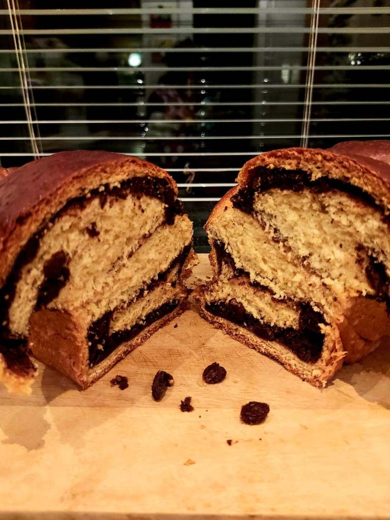 Durata acestei rețete de la frământare până la gustare, a fost în jur de 4 ore. Dacă o să încercați rețeta mea, vreau să țineți cont de tipul de cuptor pe care îl aveți și de programele din dotare. De exemplu, în rețeta originală erau 170 de grade cu un timp de coacere de o oră, iar eu am lăsat la 160 de grade tot o oră, plus 10 minute de stat în dogoreala cuptorului, după ce l – am oprit.