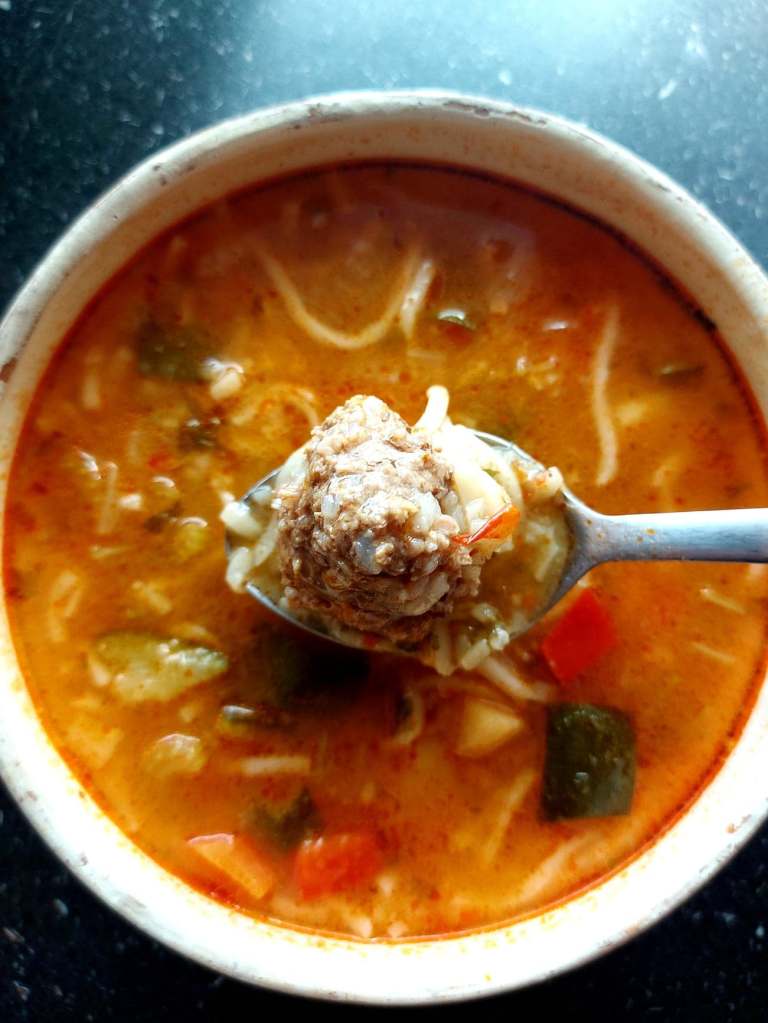 Azi e zi de zamă lungă, e vremea ciorbei, și anume ciorba de perișoare. Acrită cu primul meu borș natural, nu a ieșit prea acru ce-i drept, însă sper că a doua tură va avea succes. Secretul cică e în amestecatul mai des în apa cu tărâțea în primele zile, iar eu am cam uitat. Perișoarele sunt cu carne de vită tocată și puțin orez, iar în ciorbă găsiți toate legumele obișnuite: morcov, ardei, păstârnac, ceapă, squash, cartof, o crenguță de cimbru, bulion de ardei, tăieței cu ou, pătrunjel și mărar după gust. Voila!