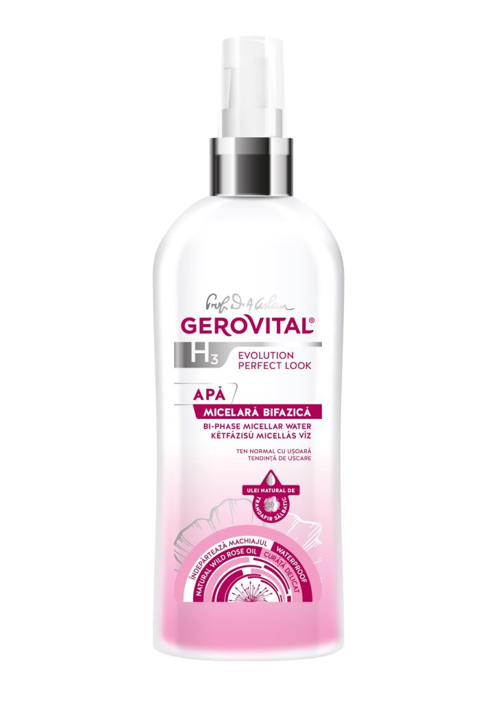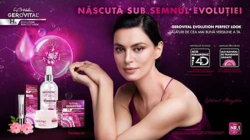 Din nou apa are un rol foarte important pentru felul în care pielea mea este lipsită de riduri pronunțate, sau vergeturi de la sarcină. Și pe lângă apă, un aport ridicat o au nelipsitele produse de îngrijire pe care nu trebuie să le ignorăm încă de pe la vârsta de 20 de ani. Încă de pe atunci folosesc creme specifice tipului de ten, pe care am ajuns să le schimb în funcție de schimbările ce au loc în corpul meu. Dacă acum 10 ani mă luptam cu acneea juvenilă și foloseam o gamă distinctă pentru a combate în același timp și apariția ridurilor, ca mai apoi să o schimb în funcție de necesitățile tenului din momentul respectiv; Ce folosesc astăzi însă, este gama completă, ce hidtratează intens pielea (obligatorie în rutina mea ca și băutul apei), nou lansată de Farmec în colaborare cu cei de la Gerovital – Doctor în frumusețe, intitulată Gerovital H3 Evolution Perfect Look.