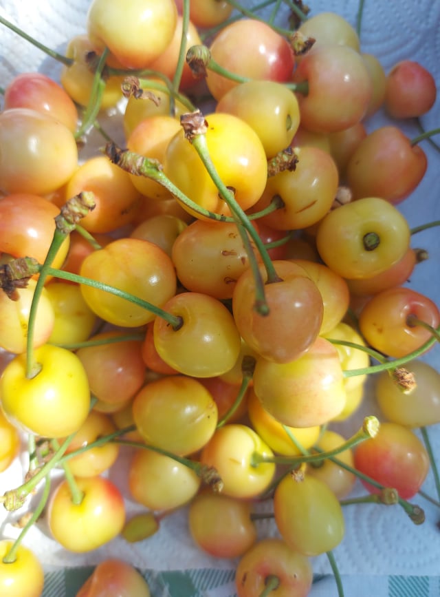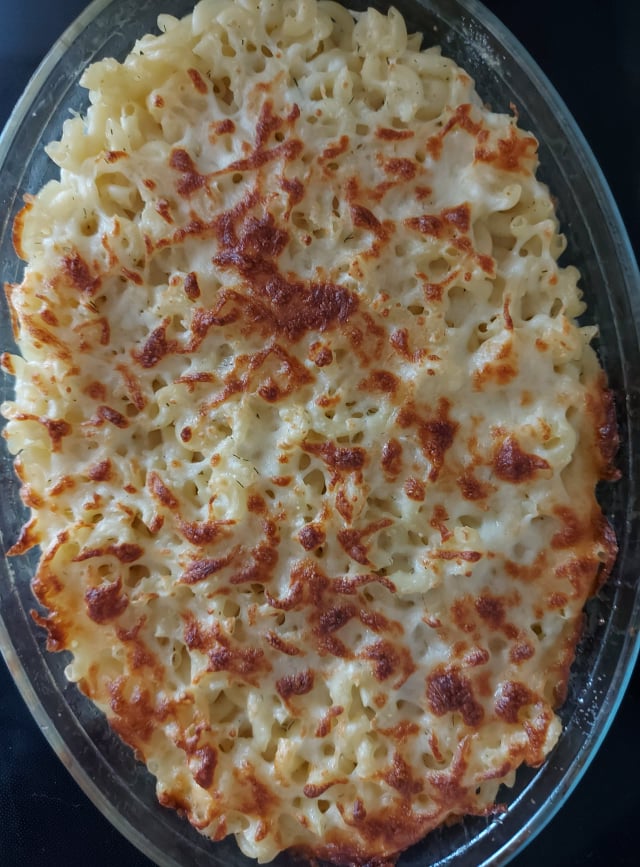 De data acesta vreau să vă prezint o rețetă de paste care nu există pe internet. Pentru că e prea simplă m-am gândit eu după ce am terminat căutările, punându-mi experiența și cunoștințele să lucreze împreună pentru a ieși o garnitură simplă care să meargă alături de orice carne doriți. Eu am servit-o exact așa, cu salată. Este foarte delicioasă această rețetă. În primul rând pune niște paste la fiert și apoi citește continuarea. Bate doua ouă într-un castron și adaugă câțiva stropi de lapte, sau câteva linguri de smântână sau iaurt. Puțin mărar, sare și piper. Unge bine o tavă cu unt, adaugă pastele fierte și răcorite peste care toarnă compoziția de ou și lapte. Amestecă ușor cu două furculițe până toate pastele au trecut prin baia de lapte. Presară pe deasupra cât mai multă mozarella și bagă la cuptor până devine totul arămiu și mirosul a inundat toată casa. După masa copioasă am servit cireșe din propria gospodărie, dulci și zemoase și pe jumătate coapte, dar nu mai apuc altfel să mănânc si eu din cauza unor păsări care de crude au început să le devoreze. Voila!